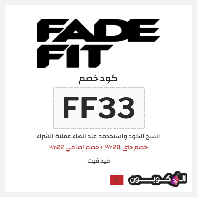 | خصم حتى 20% + خصم إضافي 22% | FF33 | كود خصم Fade Fit | حتى 20% + خصم إضافي 22% |